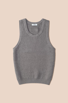 Crafted from a premium cotton and cashmere blend, the Malibu Crochet Tank Top combines effortless style with refined comfort. Designed with a slightly loose fit in a midweight knit, it offers natural softness, breathability, and year-round versatility. Finished with a ribbed bottom hem for a subtle retro edge and our signature red leather label on the back.