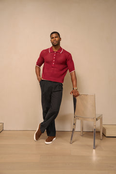 Crafted from breathable cotton knit, the Eden Roc Polo offers refined comfort with clean lines and a soft, structured drape. Featuring a five button placket, contrast rib detailing, and our signature red leather label on the back, it’s a timeless essential that embodies effortless sophistication.