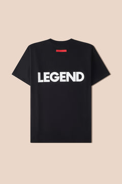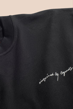 Thoughtfully designed, this version features "Inspired by Legends" elegantly written in a custom hand script on the front left chest and a bold legend print on the back. It’s finished with our classic red leather label on the back and a satin New Vanity patch on the front bottom left, making this piece a true statement of casual luxury.